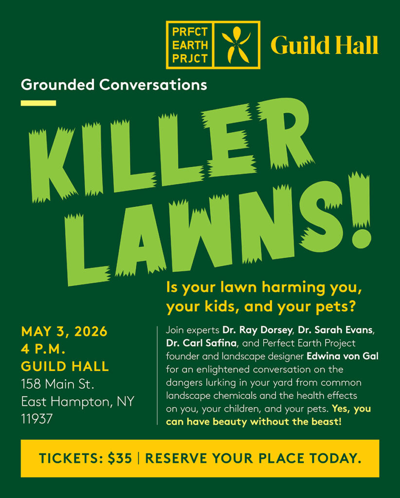 Join us for an enlightened conversation with Dr. Ray Dorsey, Dr. Sarah Evans, Dr. Carl Safina, and Edwina von Gal on the dangers lurking in your yard from common landscape chemicals and the health effects on you, your children, and your pets. Yes, you can have beauty without the beast!